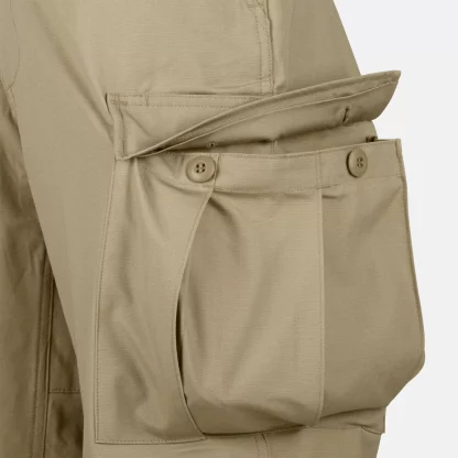 - Два набедренных грузовых кармана с клапанами на пуговицах