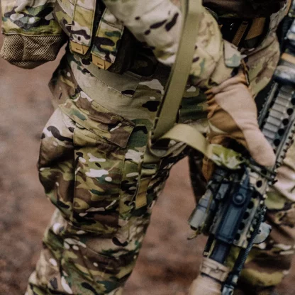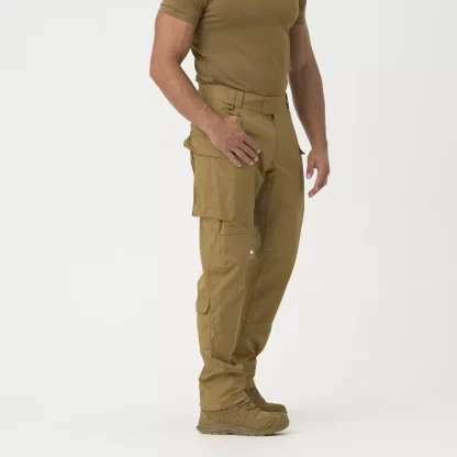 Брюки MBDU® являются частью нашей усовершенствованной полевой униформы Modern Battle Dress Uniform®. Эта униформа была изготовлена из высококачественных тканей, тщательно подобранных для обеспечения высокой прочности, а также свободы движений, что крайне важно на поле боя. Брюки свободного силуэта. Ремень застегивается на липучку, которая обеспечивает дополнительную регулировку. Широкие петли для ремня позволяют поддерживать ремень шириной до 50 мм даже с кобурой или подсумками для магазинов. Ластовицы из эластичной ткани VersaStretch® расположены на спине и в промежности для дополнительной свободы движений. Классические набедренные карманы имеют усилители по краям, чтобы их не повредили зажимы для ножей. Дополнительные задние карманы с усиленными краями подойдут для более крупных предметов, таких как магазин для карабина. На бедрах имеются большие, вместительные карманы-карго на пуговицах. На голенищах есть небольшие карманы, застегивающиеся на липучку, в которые поместятся предметы первой необходимости, например, походная одежда.