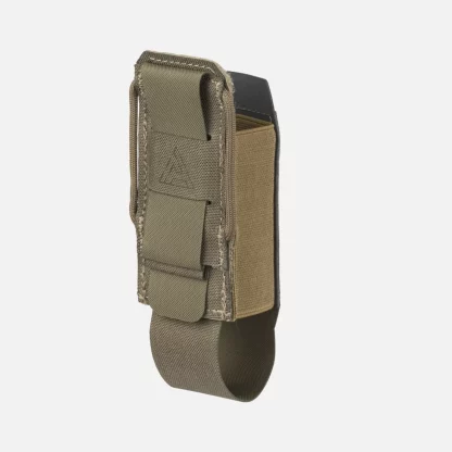 Вариант чехла для светошумовой гранаты с открытым верхом. Более плотные эластичные стенки надежно фиксируют светошумовую гранату, а регулируемая высота позволяет устанавливать самые популярные типы светошумовых гранат. Идеально подходит, когда требуется быстрое и бесшумное извлечение светошумовой гранаты. Может также оснащаться 40-мм гранатометными патронами, включая более длинные, например, осветительными сигнальными ракетами. Подсумок не только совместим с модульной системой MOLLE/PALS, но и, благодаря специально разработанным петлям из паракорда, может быть закреплен на любом оружейном ремне калибра 45 мм.