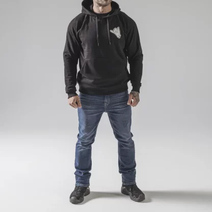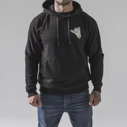 Толстовка с капюшоном и жестом шака.