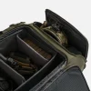 Сумка имеет четыре боковых кармана, в двух из которых могут разместиться две вставки на липучках с застежками-молниями. На верхнем клапане основного отделения также есть плоский карман на молнии. Внутри клапана расположены два больших сетчатых кармана на молнии. Мелкие предметы можно хранить в четырех карманах с прорезиненной окантовкой.