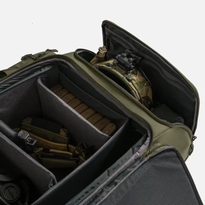 Сумка Liberator Roll Bag — это тактическая сумка большой емкости, предназначенная для переноски полного снаряжения оператора. Благодаря прочному дизайну и более чем 170 литрам места для хранения, он вмещает держатель для пластин с баллистическими вставками, шлем с навесными аксессуарами, винтовку, тактический пояс и другое необходимое снаряжение. Благодаря своей жесткой конструкции и прямоугольной форме сумка в вертикальном положении может также использоваться в качестве импровизированного шкафчика для хранения вещей, что идеально подходит для базового использования.