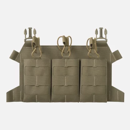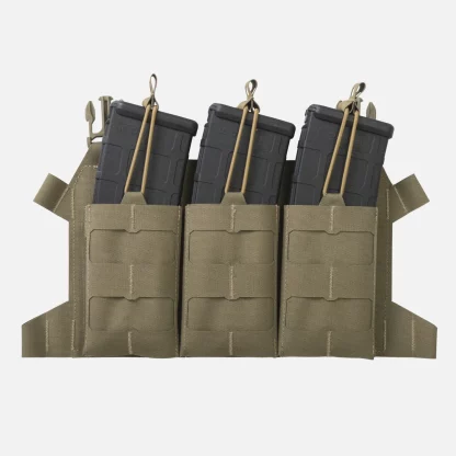 Чрезвычайно легкий скелетированный клапан, предназначенный для переноски трех магазинов M4/AR15. Оснащен модульной системой лазерной резки, совместимой с MOLLE/PALS. Клапан идеально подходит для крепления пластин BEARCAT® и системы SPITFIRE®. Магазины крепятся сверху эластичным шнуром с ручками Hypalon®. Благодаря дополнительному интерфейсу их можно превратить в компактное нагрудное устройство.