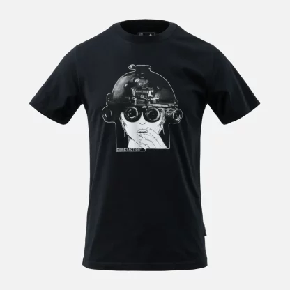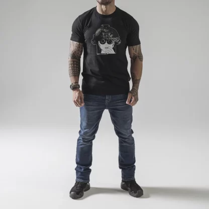 Футболка с изображением девушки в шлеме с очками ночного видения.