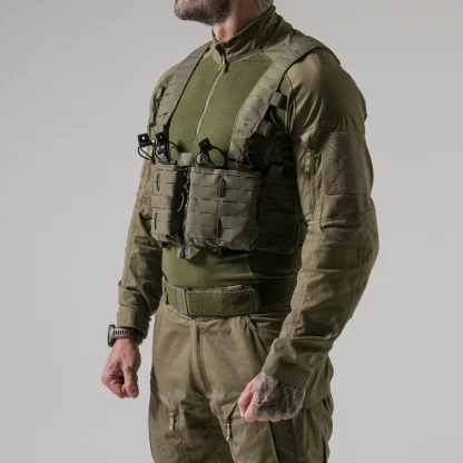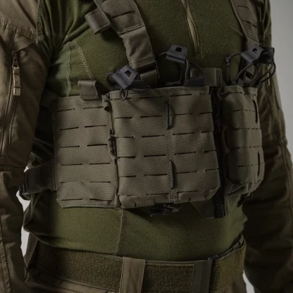 В разобранном виде и готовый к работе, TEMPEST chest rig также отличается повышенной модульностью, что позволяет полностью настраивать его под нужды пользователя. Плотная конструкция с разрезом спереди обеспечивает удобство использования в автономном режиме, а при прикреплении к держателю для пластин ваши магазины будут плотно прилегать друг к другу.