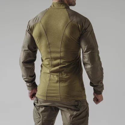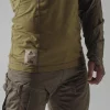 Торс изготовлен из трикотажа Polartec® PowerDry FR – эластичного, приятного на ощупь и эффективно отводит влагу от тела. Этот материал не только повышает тепловой комфорт, но и надежно работает при длительном ношении под пластинчатым каркасом. Рукава изготовлены из ткани NYCO (хлопок и нейлон), устойчивой к истиранию и разрывам, при этом оставаясь воздухопроницаемой.