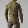 Локтевые зоны дополнительно усилены материалом Cordura® 500D, который также служит в качестве карманы для защитных прокладок – без необходимости в дополнительных слоях. На плечах расположены карманы на молнии YKK®, а пришитые к ним панели на липучках позволяют осуществлять персонализацию (флажки, идентификаторы, ИК-подсветка).
