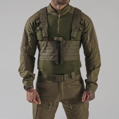 Одно из наших нагрудных приспособлений на молнии, наряду с HURRICANE® и TEMPEST®, нагрудное приспособление WARWICK® на молнии спереди является самым легким, плоским и модульным из них. Застежка-молния спереди — идеальная базовая платформа для патрульного снаряжения, особенно в сочетании с одним из наших рюкзаков. Это снаряжение изготовлено из фирменного ламината, без каких-либо дополнительных подсумков или патронов, только плоские карманы на каждой панели для карты, фотографии цели и т.д. По всей поверхности снаряжение покрыто модульной системой, совместимой с MOLLE/PALS. Благодаря съемным, полностью модульным плечевым ремням, нагрудное снаряжение можно прикрепить непосредственно к одному из наших держателей пластин.