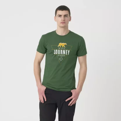 Классическая хлопковая футболка. Стойкий принт спереди отсылает к нашему девизу «Путешествие к совершенству». Эта футболка — идеальный способ показать, что каждый ваш шаг ведет к одной конечной цели.
