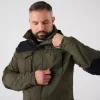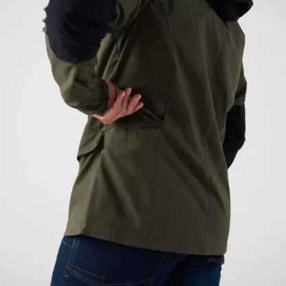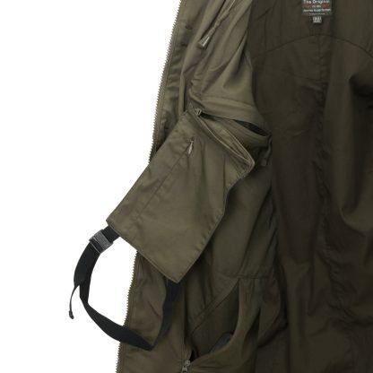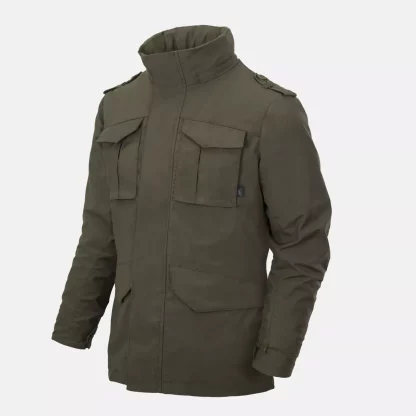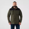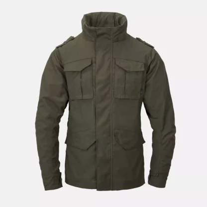 Эта классическая куртка в стиле милитари дополнительно укреплена в местах, подверженных повреждениям, и оснащена капюшоном, спрятанным в воротнике. Передняя часть застегивается на прочные канадские пуговицы и «отрывную» молнию, которая позволяет мгновенно расстегнуть куртку.