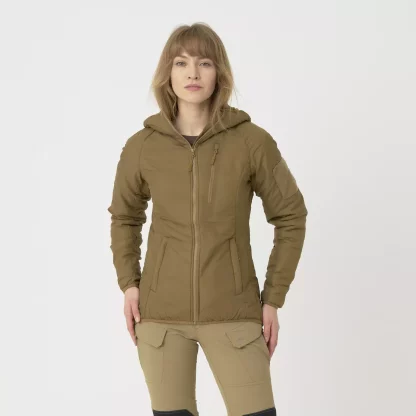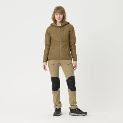 Наша легкая утепленная куртка Wolfhound с дополнительным капюшоном, разработанная специально для женской фигуры. Куртка, как и оригинальная версия, дополнена подкладкой из материала Climashield® Ape™, который сохранит тепло даже в полностью промокшей куртке. Нейлоновая ткань, из которой изготовлена куртка, легкая и дышащая. Более того, благодаря плотной ткани он защитит вас от ветра, а покрытие DWR — от небольшого дождя. Эластичная резинка в нижней части, манжетах и капюшоне повышает тепловой комфорт. Набедренные карманы обшиты мягким флисом, который защитит ваши руки от холода. Во внешних и внутренних карманах на молнии поместятся все необходимые мелочи. Куртка легкая и легко упаковываемая, поэтому вы всегда сможете взять ее с собой в поход. Она может использоваться как основная куртка или как дополнительный утепляющий слой в сочетании с более толстой внешней курткой.