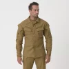 Рубашка Raid — это новая версия классической рубашки. Его можно использовать в комплекте со штанами UTP, SFU Mk2 или BDU Mk2, но он также подойдет в качестве отдельной легкой рубашки для патрулирования или городских мероприятий. Традиция создания этого вида тактической одежды восходит к 1940-м годам, но мы проследили за историческим развитием этой униформы, чтобы создать неподвластный времени и современный продукт. Рубашка Raid полностью изготовлена из эластичной ткани Рипстоп из поликоттона (48% хлопка, 50% полиэстера, 2% эластана), поэтому она слегка растягивается и обеспечивает большую свободу движений.