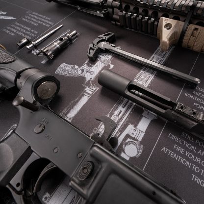 Коврик для чистки винтовки — это удобное и легко адаптируемое место для обслуживания. Он защищает элементы оружия, а также поверхность, на которой оно находится.