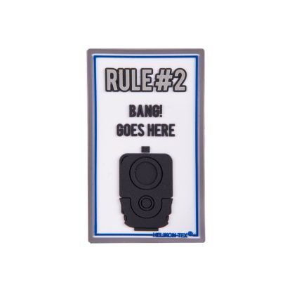 Нашивка из ПВХ с изображением некоторых правил обращения с огнестрельным оружием, но в более забавном виде. Застежка-липучка сзади позволяет прикреплять нашивку к одежде, рюкзакам, сумкам и т.д.