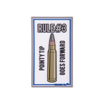 Нашивка из ПВХ с изображением некоторых правил обращения с огнестрельным оружием, но в более забавном виде. Застежка-липучка сзади позволяет прикреплять нашивку к одежде, рюкзакам, сумкам и т.д.