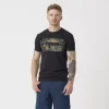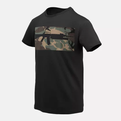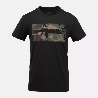 Классическая хлопковая футболка обычного покроя. Форма винтовки и камуфляж в тигровую полоску напоминают о военных корнях нашей компании. Отличительная форма футболок возникла в начале 20-го века из бывшего нижнего белья (известного как костюм union). После Второй мировой войны хлопчатобумажные футболки в форме буквы «Т» стали очень популярны, отчасти благодаря Марлону Брандо и Джеймсу Дину, которые носили их на экране.