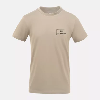 Подходит ли эта футболка для повседневной носки? Безусловно. Хлопок средней плотности хорошо пропускает воздух, выдерживает частые стирки и сохраняет форму. Минималистичный принт Front Towards Enemy – четкий, смелый и рассчитанный на долговечность — простой и понятный по сути.