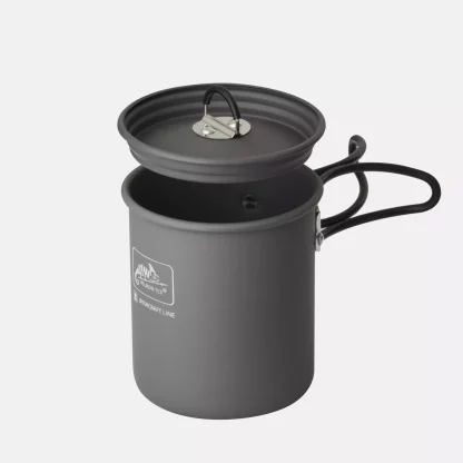 Большая походная чашка изготовлена из алюминия с твердым анодированием. Можно разогревать на газовой плите или на огне. Имеет крышку и откидную ручку, достаточно широкую, чтобы вместить 1-литровую бутылку Nalgene.
