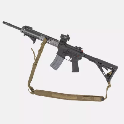 Хорошая перевязь для оружия — важнейший элемент вашего снаряжения. Не имеет значения, пользуетесь ли вы своим длинным оружием в повседневной жизни или только на стрельбище. Стропа позволяет вашим рукам отдохнуть или предохраняет оружие от ударов о землю при переходе в положение бокового рычага. ДВУХТОЧЕЧНАЯ СТРОПА для карабина — это очень простая, но хорошо продуманная стропа для оружия. Изготовленный в основном из 1-нейлоновой ленты, он имеет широкую подкладку из пенопласта в центральной части, что позволяет лучше распределять вес даже при ношении оружия с большим количеством аксессуаров. Подкладка покрыта сеткой для лучшей вентиляции и защиты шеи от царапин. Небольшой карман, закрывающийся на липучку, на подкладке comfort pad позволяет носить дополнительные батарейки для red dot или оружейного фонаря, а длинная застежка-липучка обеспечивает легкую персонализацию. Ремень крепится к оружию с помощью лямок с триггерами. Кроме того, имеются два адаптера для крепления перевязи к различным креплениям для оружия, в том числе на предплечье. Благодаря системе быстрой регулировки длину перевязи можно подогнать практически под любой силуэт или снаряжение.
