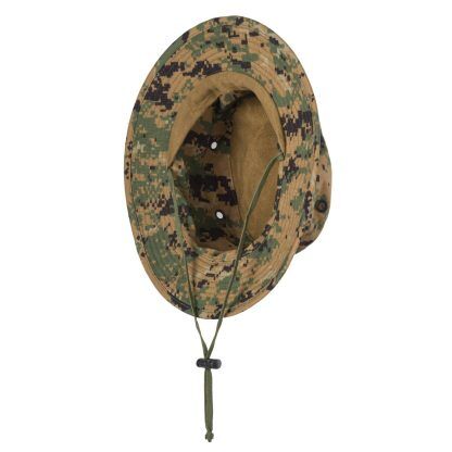 Военная фуражка с характерным дизайном и кроем фуражки Корпуса морской пехоты США, доставленная в USMC Digital Woodland. Шляпа имеет широкие поля, боковые вентиляционные люверсы для вентиляции и воздухопроницаемости, а также вышитый логотип морской пехоты США спереди. Она предназначена для работы в лесах и пустынных районах и обеспечивает эффективную защиту от солнца и дождя.