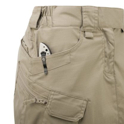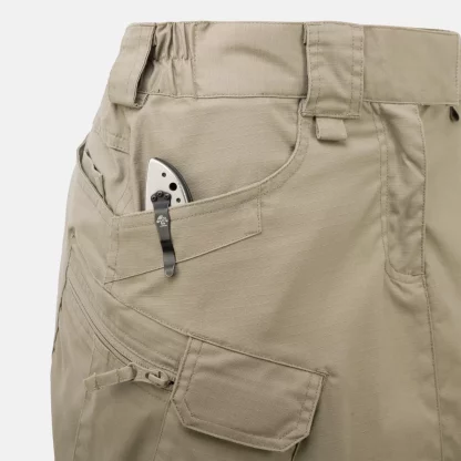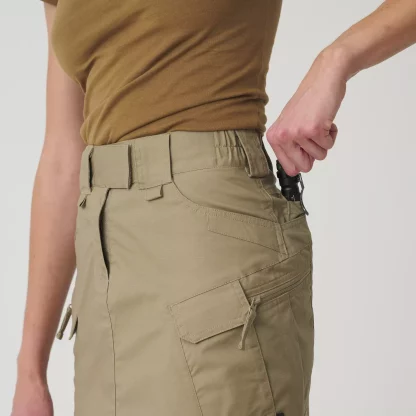 До сих пор казалось совершенно немыслимым даже думать о том, чтобы сочетать классическую функциональность UTP с более женственным внешним видом, чего требуют некоторые наши клиентки. Но теперь, та-дам, вот она: новая тактическая юбка, абсолютно первая в нашей женской городской тактической коллекции и, насколько нам известно, единственная подобная на рынке. Эластичный пояс с застежкой на липучке позволяет регулировать размер юбки, а широкие шлевки для ремня позволяют использовать ремни шириной до 50 мм. Используемая ткань легкая, дышащая и быстро сохнет. Края передних карманов укреплены для крепления фонариков или ножей. Два задних кармана достаточно широкие для хранения магазинов. В них есть два внутренних кармана меньшего размера для дополнительного снаряжения. Расположение набедренных карманов такое же, как в моделях UTP/UTS. В два из них, застегивающихся на липучки, поместится магазин смартфона, а в два больших кармана на молнии можно поместить бумажник или удостоверение личности. Для уменьшения веса они частично выполнены из плотной сетки. На передних шлевках для ремня есть петли для шнурков. Полная функциональность UTP в полностью женском исполнении.