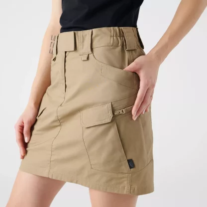 UTS (Urban Tactical Skirt) — это женственная, эргономично скроенная модель, которая идеально подходит для повседневных миссий. Эта короткая юбка имеет широкий удобный эластичный пояс, застегивающийся на прочную застежку-крючок. Она включает в себя десять просторных карманов, вдохновленных классическими брюками UTP, которые, несмотря на свою вместительность, не искажают форму и не утяжеляют юбку.