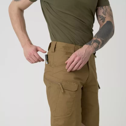 Благодаря продуманному расположению карманов снаряжение можно разместить ближе к центру тяжести, вокруг бедер и талии. Края передних и задних карманов укреплены, чтобы выдерживать постоянное перемещение зажимов для света или ножей. Два передних кармана, закрывающихся на липучки, достаточно велики, чтобы вместить смартфон или даже магазин для винтовки AR / AK. Набедренные карманы на молнии выглядят плоскими, но их конструкция позволяет с легкостью носить сумки или кошельки. Широкий выбор расцветок позволяет сочетать шорты с остальным гардеробом или условиями работы.