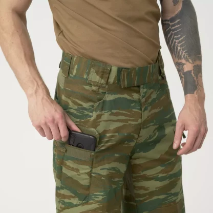 Наши популярные городские тактические брюки FLEX в укороченном варианте идеально подходят для жарких дней. Самое главное, что брюки обладают всеми функциями стандартной версии, что позволяет носить с собой основное снаряжение. Правильно подобранный рисунок карманов позволяет распределить нагрузку в центральной части — вокруг бедер и пояса. Края передних карманов усилены для лучшей фиксации ножей. Два передних кармана, закрывающихся на крючки и петли, идеально подходят для вашего смартфона, а также для магазина AR /AK. На бедрах имеются накладные карманы на молнии для более крупных предметов. Для большей свободы движений на спине и в области промежности предусмотрены эластичные вставки VersaStretch.